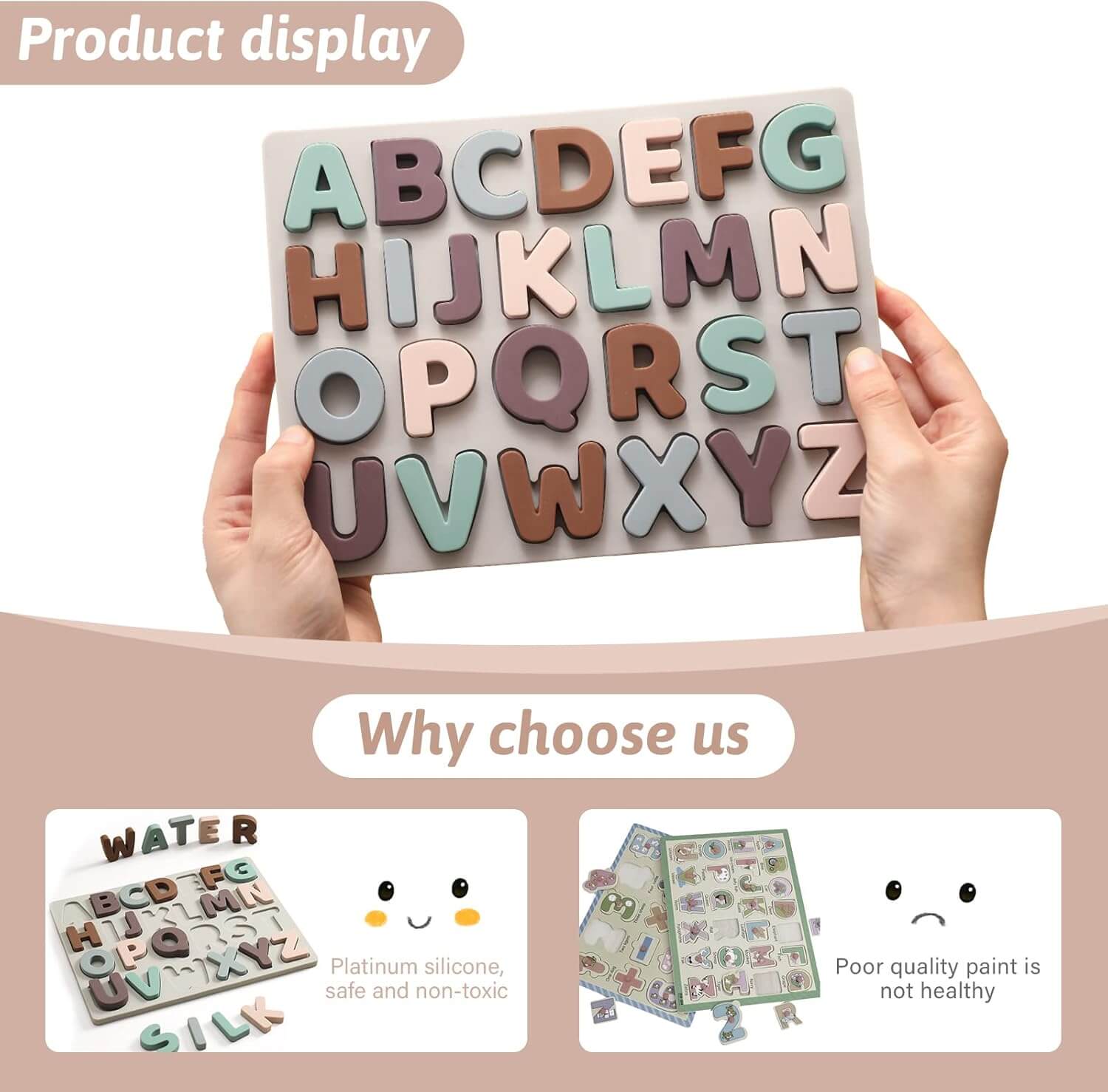 • ❤️100% Safe Alphabet Puzzle: Each Macabaka alphabet puzzle is made of top food-grade. No smell, soft texture and smooth edges keep your preschool boys and girls playing safely. All of our silicone shape puzzles are Free from BPA, Phthalates, Lead, PVC, and other nasties! Macabaka cares about your baby’s safety, we make sure the ABC puzzle is safe for your baby’s touch and play. (Note: To be used under the direct supervision of an adult. Avoid accidental ingestion by toddlers.)