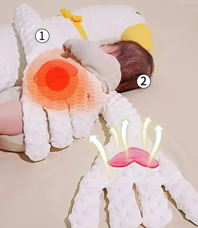 Nachdem die rote Bohneneinlage erhitzt wurde, geben Sie Ihrem Baby eine mütterliche warme Kompresse auf den Babybauch, um die Erschöpfung zu fördern und Blähungen zu lindern.